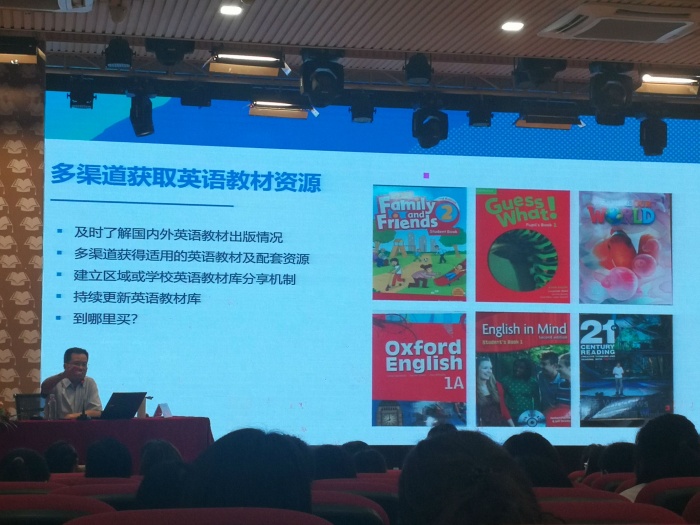 活動(dòng)開始,首先觀摩了三鑫雙語(yǔ)學(xué)校鄭曉晴老師給我們帶來的五年級(jí)英語(yǔ)Unit 1 Seasons and Weather—Reading and Writing閱讀寫作課和小欖菊城小學(xué)周靜老師帶來的三年級(jí)英語(yǔ) Unit 5 Let’s eat ( Part B)兩節(jié)精彩課例。兩位老師圍繞教學(xué)內(nèi)容進(jìn)行深入的解讀和對(duì)相關(guān)內(nèi)容進(jìn)行跨年級(jí),跨版本教材和跨學(xué)科的教材整合,然后巧妙地滲透在她們的課堂設(shè)計(jì)中,使學(xué)生不單單是語(yǔ)言的習(xí)得與輸出,更是豐富了學(xué)生的學(xué)習(xí)方式,擴(kuò)大學(xué)習(xí)范圍,完善知識(shí)結(jié)構(gòu),豐富世界知識(shí)。之后程曉堂教授進(jìn)行精彩的點(diǎn)評(píng),就小學(xué)英語(yǔ)跨教材資源的開發(fā)與利用進(jìn)行講座。程教授用幽默風(fēng)趣的語(yǔ)言從跨教材的緣起,跨教材資源的價(jià)值,跨教材資源的開發(fā)和跨教材資源的使用四方面向我們闡述了小學(xué)英語(yǔ)跨教材資源的開發(fā)與利用。程教授認(rèn)為不同的教材采取的教與學(xué)的路徑可能有差異,為了使學(xué)生經(jīng)歷不同的學(xué)習(xí)路徑,可以兼用不同教材的教與學(xué)的路徑,豐富了學(xué)習(xí)方式,整合語(yǔ)言知識(shí),完善知識(shí)結(jié)構(gòu),擴(kuò)大學(xué)習(xí)范圍,豐富世界知識(shí)。他指出英語(yǔ)課程不只是讓學(xué)生學(xué)習(xí)英語(yǔ)知識(shí),發(fā)展英語(yǔ)技能,還要學(xué)習(xí)各方面的知識(shí)(world knowledge)。最后辛健老師進(jìn)行總結(jié),他指出小學(xué)英語(yǔ)教師應(yīng)具備教材大資源觀,整合教材之長(zhǎng),取長(zhǎng)補(bǔ)短。同時(shí)指出老師要有提高自我專業(yè)發(fā)展的意識(shí),注重個(gè)人學(xué)習(xí),向大家推薦一些英語(yǔ)教學(xué)理論書籍和期刊進(jìn)行學(xué)習(xí)。