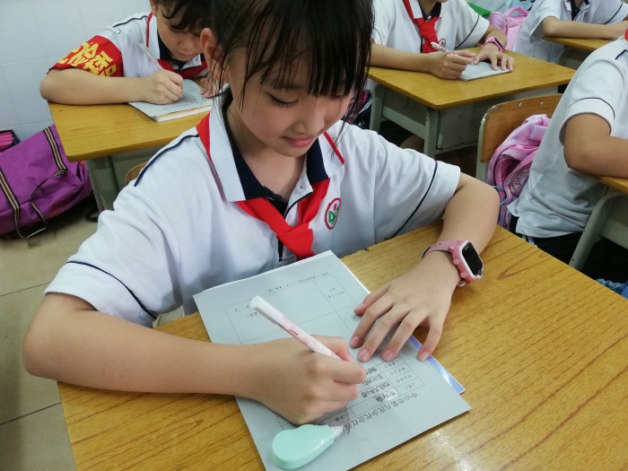 接著是填寫《紅領(lǐng)巾小心愿表》。 “紅領(lǐng)巾們”寫得多認(rèn)真呀!一個個的小提案、小心愿躍然紙上,充分體現(xiàn)了少先隊(duì)員當(dāng)家作主的主人翁精神。