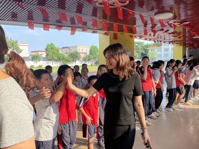 活動(dòng)中,隨著悠揚(yáng)的旋律響起,在該校胡映芬校長(zhǎng)的帶領(lǐng)下全校教師與學(xué)生互相致意,互相擊掌慶祝。一聲聲真誠(chéng)的問(wèn)候,一個(gè)個(gè)燦爛的笑臉,共同為教師們送上了美好的祝福,一句句“老師,您辛苦了”,讓老師們感動(dòng)不已;一聲聲感恩的“真情訴說(shuō)”讓老師甜透心田,表達(dá)著學(xué)生對(duì)老師們最崇高的敬意。老師們聽(tīng)到學(xué)生一聲聲的祝福,臉上流露出欣慰的笑容。在一陣陣掌聲中,這場(chǎng)感念師恩的活動(dòng)給師生們留下了難忘的回憶。