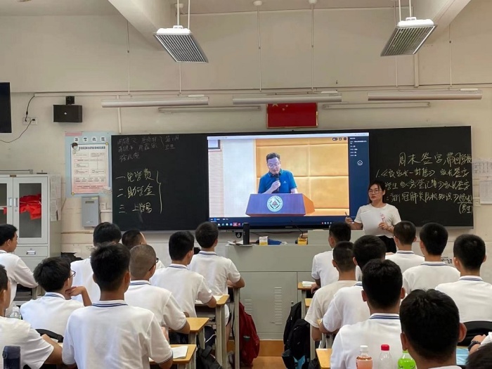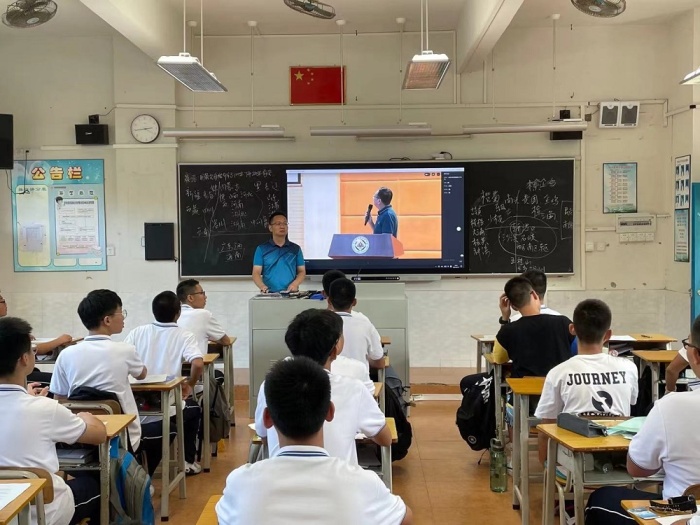 他以中山籍奧運健兒蘇炳添在東京奧運賽場上頑強拼搏為國爭光談起,激發(fā)青年學生對民族的自豪感和榮譽感。繼而他拋磚引玉地提出問題:“同學們對責任與擔當?shù)目捶ㄊ鞘裁??”“作為新時代的青年,你們的時代擔當是什么?”事例催人奮進,問題發(fā)人深省。