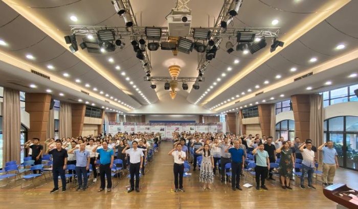 9月10日,中山市沙溪理工學(xué)校全體教職工歡聚一堂,在學(xué)校綜藝廳共同慶祝第37個教師節(jié)暨表彰大會。會上,學(xué)校黨總支書記、校長馮子川帶領(lǐng)全體教師學(xué)習(xí)領(lǐng)會《習(xí)近平給全國高校黃大年式教師團(tuán)隊(duì)代表的回信》《中山市教育和體育局致全市教師的一封信——老師,您辛苦了》等文件精神,表彰優(yōu)秀教師,并帶領(lǐng)全體教師宣誓。大會由學(xué)校副校長盧永輝主持。