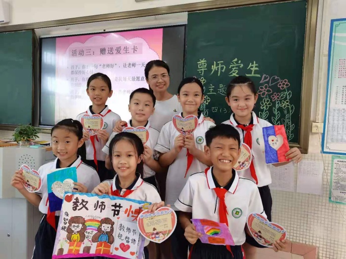 教師節(jié)當(dāng)天,學(xué)校黨支部書(shū)記、校長(zhǎng)孫華向全校教師轉(zhuǎn)達(dá)了石岐街道黨工委勞國(guó)南書(shū)記,學(xué)校駐點(diǎn)領(lǐng)導(dǎo)曹宇書(shū)記等上級(jí)領(lǐng)導(dǎo)對(duì)教師的問(wèn)候和祝福。學(xué)校為每一位教師送上一封感謝信與一本《做黨和人民滿意的好教師》書(shū)籍,感謝老師們孜孜不倦地辛勤付出,勉勵(lì)全體教師努力辦好讓人民更滿意的教育,校園內(nèi)凝聚著斗志昂揚(yáng)的青春正能量!學(xué)校還組織了一系列教師節(jié)慶?;顒?dòng),激勵(lì)教師們賡續(xù)百年初心,擔(dān)當(dāng)育人使命。學(xué)校黨支部組織全體教師學(xué)習(xí)9月8日習(xí)近平總書(shū)記給全國(guó)高校黃大年式教師團(tuán)隊(duì)代表的回信,號(hào)召教師要牢記習(xí)近平總書(shū)記的囑托,堅(jiān)守教育報(bào)國(guó)理想,為民族復(fù)興貢獻(xiàn)力量。守靜讀書(shū)會(huì)組織教師學(xué)習(xí)“人民教育家”于漪老師的先進(jìn)事跡;觀看教師節(jié)主題MV《百年大先生》,在回首黨的百年風(fēng)華中致敬李大釗、蔡元培、陳望道等為了民族獨(dú)立、國(guó)家富強(qiáng)而不懈奮斗的“大先生”。學(xué)校工會(huì)還組織了趣味心理團(tuán)康活動(dòng),讓老師們愉悅身心。教師節(jié)到來(lái)之際,同學(xué)們積極踐行學(xué)校提倡的“廉潔文化”,紛紛通過(guò)自己制作手工、拍攝視頻的方式為老師獻(xiàn)上祝福。最燦爛的笑容送給您,最動(dòng)聽(tīng)的歌聲獻(xiàn)給您。一張張笑臉、一陣陣掌聲、一個(gè)個(gè)擁抱,匯聚成了體育路學(xué)?!白饚煇?ài)生節(jié)”最美的一道風(fēng)景線。