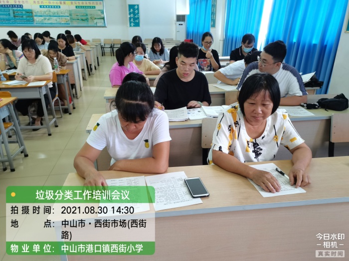 為了積極響應(yīng)上級號召,促進(jìn)生活垃圾減量,推進(jìn)垃圾分類管理工作,8月30日下午,港口鎮(zhèn)西街小學(xué)在大多媒體室召開了生活垃圾分類工作培訓(xùn)會議,有75名老師、2名保潔員、4名保安參加這次會議。在會議上,全體教職工除了觀看“生活垃圾分類知多少”視頻,還積極參與了垃圾分類知識的測試,平均分98分,準(zhǔn)確地掌握垃圾分類基礎(chǔ)知識。通過此次培訓(xùn)會議,提高廣大教職工的環(huán)保意識,為創(chuàng)造優(yōu)美的校園環(huán)境打下堅實的基礎(chǔ)。