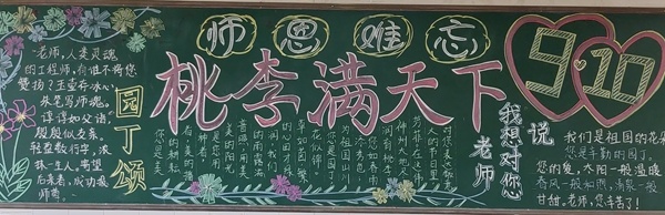 各班在教師節(jié)到來之前,出了一期以“慶祝教師節(jié)”為主題的黑板報。同學(xué)們懷著對老師崇高的敬意,創(chuàng)作出一幅幅溫暖人心的板報,內(nèi)容生動豐富,情感真摯深沉。其次,各班開展以尊師為主題的班會活動,以實際行動向老師們表達(dá)由衷的敬意,師生情在心與心之間的交流中輕輕流露。校園里洋溢著喜慶,課堂充滿了溫馨,老師們感受到節(jié)日的快樂,享受到了幸福。在學(xué)校的組織下,學(xué)生自制賀卡、繪畫、錄制視頻,給老師寫祝福語、說說心里話,學(xué)生們發(fā)自內(nèi)心的祝福讓老師們甜透心田。這個節(jié)日,老師收獲到最好的禮物——尊重。孩子們則懂得了感恩,在讀懂那一份份沉甸甸的“感恩”后,老師們也將一如既往地以最大的工作熱情、最先進的教育理念來關(guān)注孩子的成長。