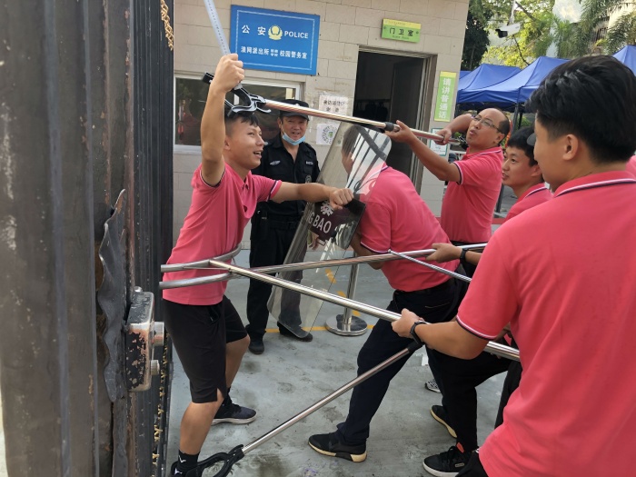 為有效預(yù)防、及時(shí)控制和消除校園重大突發(fā)事件的危害,保障師生身體健康與生命安全,維護(hù)學(xué)校正常的教育教學(xué)秩序,全面提高應(yīng)對(duì)恐怖和暴力能力。中山市民眾新徽學(xué)校于2021年9月10日上午組織應(yīng)急防暴組人員開展安全防暴反恐模擬演練活動(dòng)。