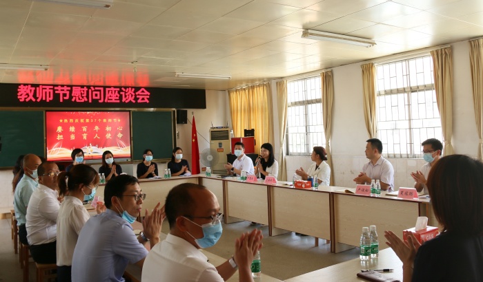 第37個(gè)教師節(jié),如約而至。十年樹木、百年樹人,教師的使命偉大而光榮。2021年9月10日,中山市市委組織部常務(wù)副部長(zhǎng)、一級(jí)調(diào)研員左海燕、中山市市委組織部組織三科科長(zhǎng)盧俊松、坦洲鎮(zhèn)黨委副書記羅慧玲、鎮(zhèn)黨委委員夏冠聰以及鎮(zhèn)黨建辦、宣傳辦、教育和體育事務(wù)中心等領(lǐng)導(dǎo)走進(jìn)學(xué)校,慰問教師。向辛勤耕耘在教育一線的老師們送去了節(jié)日的祝福與真切的關(guān)懷。參加本次慰問座談會(huì)的還有坦洲鎮(zhèn)第三初級(jí)中學(xué)、十四村小學(xué)校級(jí)領(lǐng)導(dǎo)和部分教師代表。