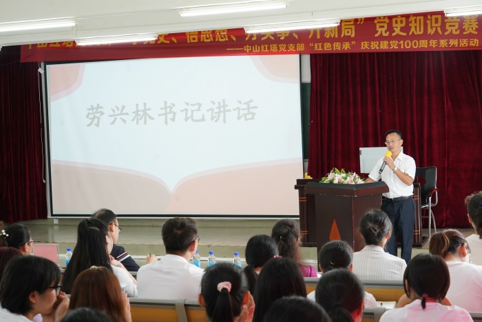 大會第四項,由中山紅塔黨支部書記、中山市廣大匯翠學(xué)校理事長勞興林同志講話。