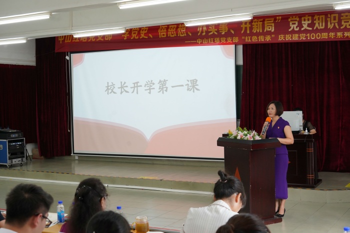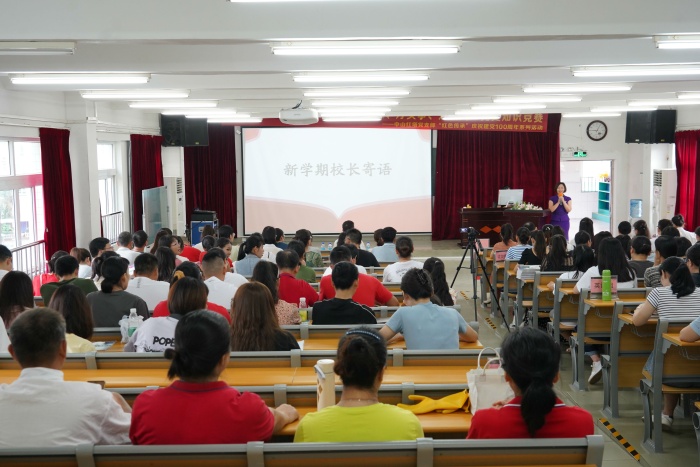 大會第一項,由陳秀文校長給全體教師上“開學(xué)第一課”。
