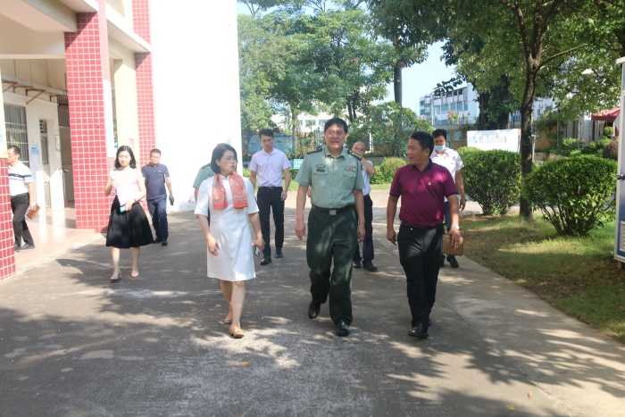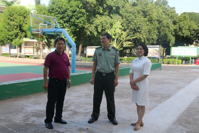 劉燦瑩等市鎮(zhèn)領(lǐng)導(dǎo)一行看望慰問了學(xué)校辛勤耕耘在教育一線的老師們,送上了黨委政府的溫暖和關(guān)懷,向老師們致以節(jié)日的祝福和親切的問候。隨后,在黎碧東校長等學(xué)校領(lǐng)導(dǎo)的陪同下,劉燦瑩一行巡視了初三教學(xué)樓、禁毒教育室、食品快檢室、交通安全活動室等相關(guān)功能場室、教學(xué)樓、辦公室等公共設(shè)施,并詳細了解了學(xué)校日常工作的相關(guān)情況。在聽取了黎碧東校長對學(xué)校建設(shè)、師生基本情況、辦學(xué)成績、新學(xué)年辦學(xué)設(shè)想以及開學(xué)防疫措施等有關(guān)概況的匯報后,政委對近年來橫欄中學(xué)在教育教學(xué)工作中所取得的成績給予充分肯定,并勉勵學(xué)校再創(chuàng)佳績。劉政委最后還表示,教育是民族振興、社會進步的基石,希望我們?nèi)w教師要堅持立德樹人的理念,奮進擔(dān)當(dāng),敬業(yè)愛崗,銳意進取,同時也要繼續(xù)加強國防安全教育,為全市教育事業(yè)發(fā)展再創(chuàng)新績。