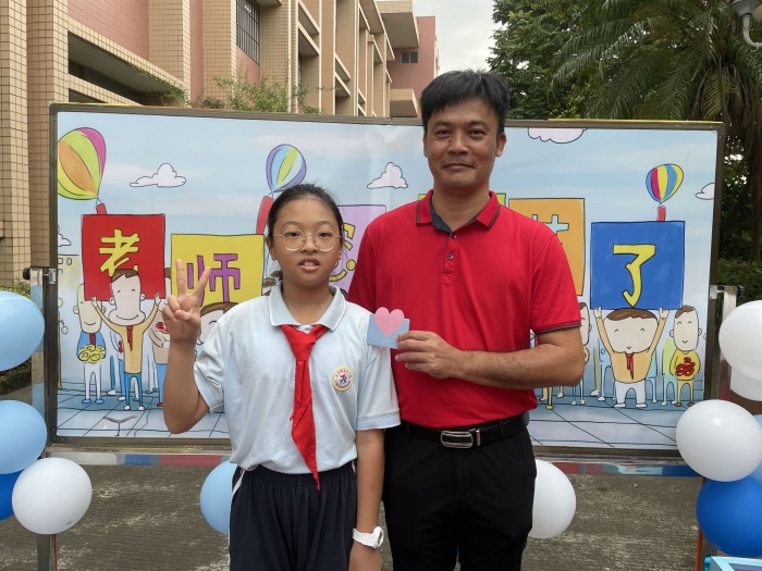 為了迎接一年一度的教師節(jié),旗北小學(xué)全體行政和體藝科組提前精心策劃,給旗北小學(xué)全體教師送上最真摯的祝福。上午7時30分,教學(xué)樓樓梯鋪上了鮮艷的紅地毯,裝點上節(jié)日的氣球,學(xué)生站在地毯兩側(cè),靜候旗北小學(xué)教師的到來。當(dāng)各位教師走上紅毯時,兩旁學(xué)生一齊對老師說:“老師,您辛苦了,節(jié)日快樂!”隨后,學(xué)生向老師送出親手寫的賀卡并和老師合影留念,讓全體教師感受到了節(jié)日的驚喜。