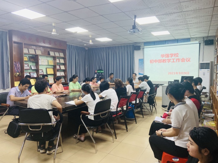 9月9日晚,華強(qiáng)學(xué)校初中部全體教師集中在學(xué)校會(huì)議室,召開教學(xué)工作會(huì)議。會(huì)議由主管初中部教學(xué)工作的周波主任主持。