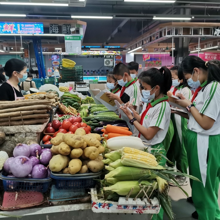 本次活動(dòng)主要由馮建青老師策劃,參與的學(xué)生是六年級的孩子?;顒?dòng)開展前他們先自行設(shè)計(jì)好調(diào)查表,并討論出調(diào)查的內(nèi)容:認(rèn)蔬菜的名稱;蔬菜的價(jià)格;蔬菜的進(jìn)貨。馮老師特意向孩子們講解了開售前的準(zhǔn)備工作以及調(diào)查訪問的注意事項(xiàng):要有禮貌;注意訪問的技巧;做好調(diào)查訪問的記錄等等。一切準(zhǔn)備就緒后,學(xué)生們帶著興奮的心情來到了學(xué)校附近的源昌結(jié)民市場開始他們的調(diào)查之旅。