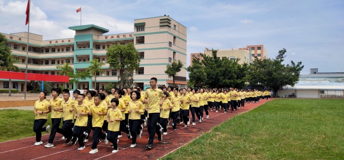 接下來,楊建民老師還觀摩了學(xué)校八年級的跑操,對初中生跑操中的不足,進(jìn)行了點(diǎn)評與指導(dǎo),并親自帶領(lǐng)學(xué)生練習(xí)跑操,熱身活動、手臂擺動、跑步姿勢、動作協(xié)調(diào),他分解每個動作,關(guān)注每個細(xì)節(jié),示范口號,漸漸地,學(xué)生動作整齊劃一,井然有序。