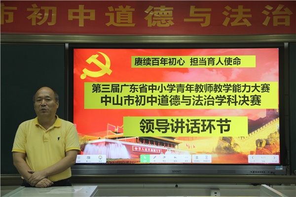 為推動初中道德與法治課程教學(xué)改革,進一步提高道德與法治教師業(yè)務(wù)水平,加強思政課教師隊伍建設(shè),第三屆廣東省中小學(xué)青年教師教學(xué)能力大賽中山市初中道德與法治學(xué)科決賽于2021年9月16日—17日在溪角中學(xué)如期舉行。中山市教育教學(xué)研究室何晉中主任、中山市教體局秘書科譚燕燕科長、中山市教育教學(xué)研究室夏建軍老師、沙溪鎮(zhèn)教體文旅局局長貝鵬程、沙溪鎮(zhèn)教育和體育事務(wù)中心寧云志主任蒞臨現(xiàn)場。
