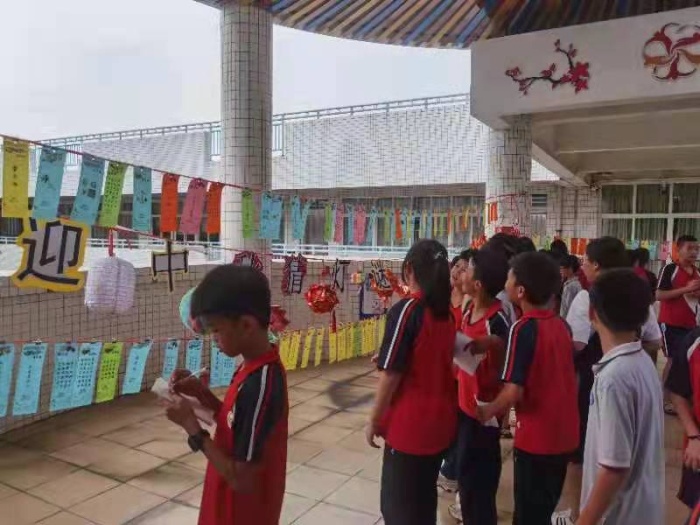 低年級(jí)開展了“中秋歌謠傳情意”“中秋故事會(huì)”“ 習(xí)俗知多少”“畫中秋”等活動(dòng),讓學(xué)生通過朗誦關(guān)于“月”的童謠詩歌,欣賞繪本、故事等了解中秋節(jié)的起源和節(jié)日風(fēng)俗。中年級(jí)開展了“經(jīng)典詩文誦讀”“月餅制作”“詩詞配畫”等活動(dòng),老師和學(xué)生一起制作可愛甜美的小月餅,感受中秋習(xí)俗的無限樂趣。高年級(jí)開展了“詩詞鑒賞”“迎中秋猜燈謎”“書法寫中秋”等活動(dòng)。在猜燈謎的活動(dòng)現(xiàn)場,孩子們興致勃勃地競猜燈謎,猜中的還可以拿到小禮物,個(gè)個(gè)臉上笑開了花。
