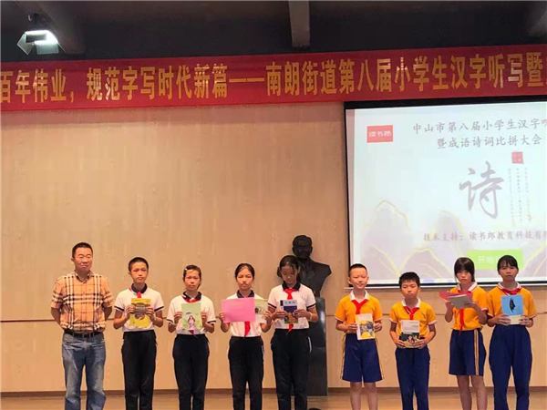 接著為參加南朗街道第八屆小學(xué)生漢字聽(tīng)寫暨成語(yǔ)詩(shī)詞比拼,榮獲銀獎(jiǎng)的同學(xué)頒獎(jiǎng)。