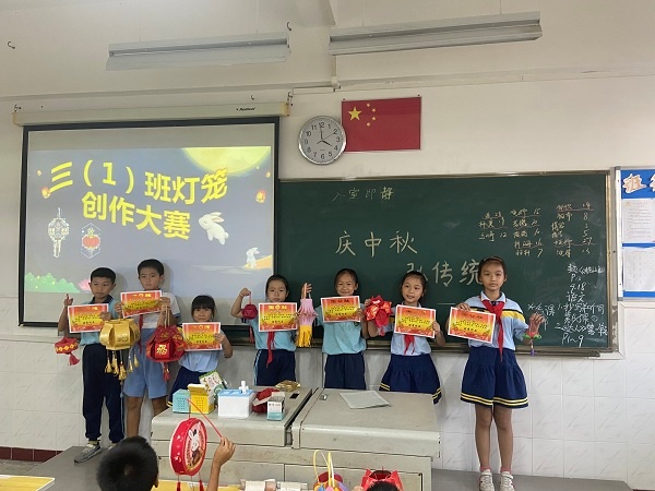9月18日,為了讓學(xué)生更深入了解中秋節(jié)文化,少先隊(duì)大隊(duì)輔導(dǎo)員朱文娟老師在國(guó)旗下深情地講述關(guān)于中秋節(jié)的來(lái)歷,與學(xué)生們一起吟詠文人墨客的經(jīng)典詩(shī)文,呼吁大家繼承祖國(guó)優(yōu)秀傳統(tǒng)文化和傳統(tǒng)節(jié)日,增強(qiáng)民族文化自信心。班會(huì)課上,班主任有條不紊地開(kāi)展活動(dòng)。如一、二年級(jí)的小朋友,在爸爸媽媽的幫助下帶上月餅、水果等美食,與同學(xué)們開(kāi)展中秋傳統(tǒng)美食交流會(huì)。三、四年級(jí)開(kāi)展一次中秋創(chuàng)意燈籠展示會(huì)。會(huì)上,學(xué)生提著親手制作的燈籠得意地分享他們的制作樂(lè)趣。