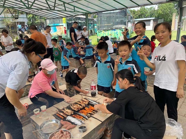 當(dāng)天,該校少工委提前準(zhǔn)備好野炊食材與工具,50余名少先隊員在教師與家長的悉心指導(dǎo)下,開始試著清洗食材、制作美食……每個步驟有序地進行著。當(dāng)美味的食材烤制完成時,每位少先隊員的臉上都露出了燦爛的笑容?!敖裉焓俏业谝淮瓮獬鲆按?,收獲非常多,我想把最美味的菜肴送給我最愛的爸爸媽媽?!焙⒆觽冮_心地說道。