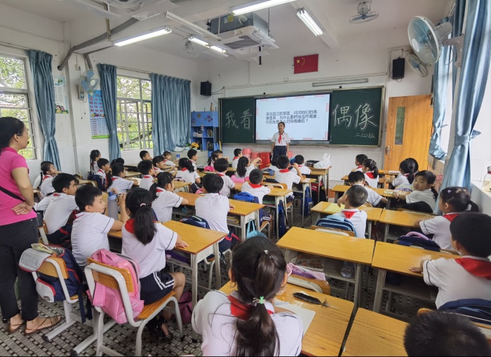 青少年時期是人們形成世界觀、人生觀和價值觀的重要階段,偶像崇拜是當今青少年精神生活的一部分,是成長的必經(jīng)之路,是社會化的重要歷程。為了科學地引領幫助孩子們樹立正確的偶像觀,發(fā)揮偶像們的激勵作用。9月27日,石岐實驗小學對全校同學進行了“我看偶像”主題班隊活動。