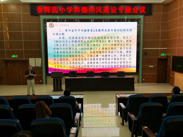 香暉園小學(xué)一直致力于建設(shè)一支師德高尚、業(yè)務(wù)精湛、充滿活力的高素質(zhì)教師隊伍。本次師德師風(fēng)建設(shè)專題會議的順利舉行,進一步加強了香小教師職業(yè)道德建設(shè),提升了教師職業(yè)道德水平。