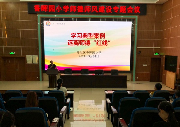 為深入學(xué)習(xí)貫徹習(xí)近平總書記在慶祝中國共產(chǎn)黨成立100周年大會上重要講話精神,全面落實上級相關(guān)文件精神,進一步加強和改進新時代師德師風(fēng)建設(shè),提升教師思想政治素養(yǎng)和職業(yè)道德水平,9月24日下午,香暉園小學(xué)組織全體教師舉行師德師風(fēng)建設(shè)專題會議。