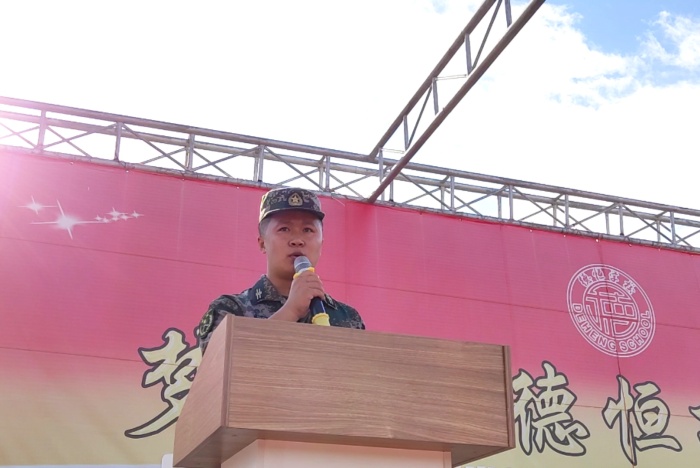 隨后,民眾街道武裝部陳順興代表全體教官發(fā)表了講話,向同學(xué)們明確了本次軍訓(xùn)的訓(xùn)練目標(biāo)及要求,在軍訓(xùn)過程中,要做到尊敬教官、服從命令、克服困難、嚴(yán)格訓(xùn)練。