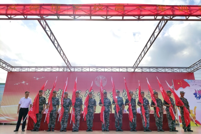 “軍訓(xùn)是邁入高中階段的重要一課,意義重大?!钡潞銓W(xué)校高中部韓望東校長致辭,對(duì)高一年級(jí)學(xué)生寄予殷切寄語和期望,希望通過這次的軍訓(xùn),同學(xué)們能增強(qiáng)體質(zhì),磨煉意志,鍛煉品質(zhì),加深師生感情,增強(qiáng)紀(jì)律觀念,培養(yǎng)良好的行為習(xí)慣。