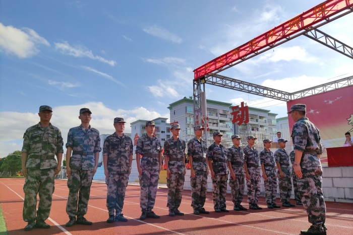 陽光明媚、丹桂飄香,又是一年軍訓(xùn)時(shí)。2021年9月23日上午,中山市民眾德恒學(xué)校高中部2021級(jí)高一新生軍訓(xùn)拉開了序幕。上午8點(diǎn),軍訓(xùn)開營儀式在德恒操場(chǎng)舉行,由高一年級(jí)長江鏡標(biāo)老師主持,德恒學(xué)校高中部校長韓望東、民眾街道武裝部呂純開干事、德恒學(xué)校尋樂天主任、李勇主任、潘恒主任、高金發(fā)主任參加了開營儀式。