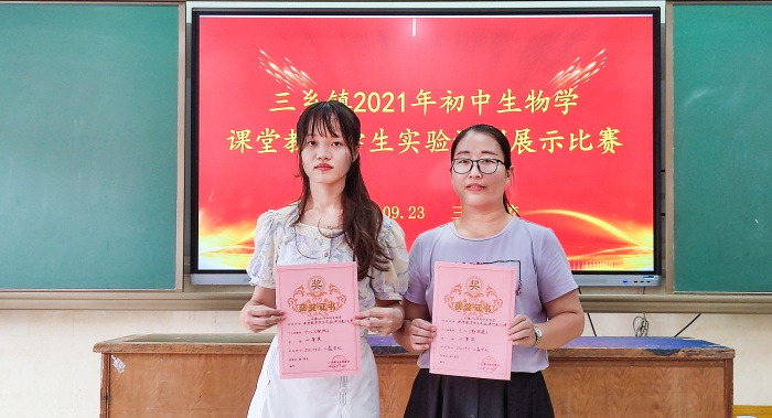 經(jīng)過激烈的角逐,評委們對參賽教師們進(jìn)行綜合評比打分,評出了一、二等獎。比賽結(jié)束后,三鄉(xiāng)鎮(zhèn)理化生中心教研組組長陳春華老師為各位獲獎選手頒發(fā)榮譽(yù)證書。獲獎情況如下: