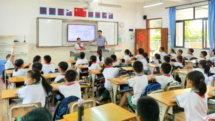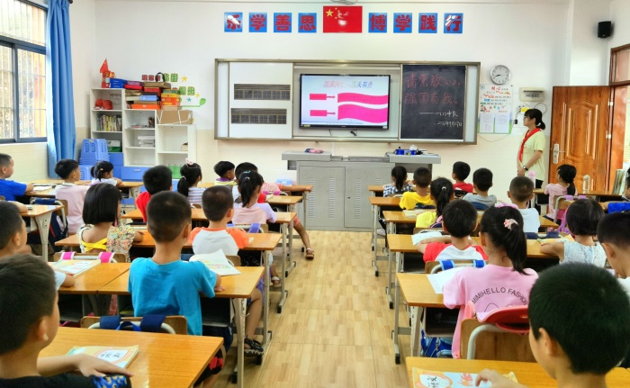隊(duì)會(huì)課上,各中隊(duì)輔導(dǎo)員帶領(lǐng)隊(duì)員重溫“請(qǐng)黨放心 強(qiáng)國(guó)有我”的獻(xiàn)詞,借此契機(jī),利用“學(xué)習(xí)強(qiáng)國(guó)”平臺(tái)上資源,播放典型黨員楷模的故事,引導(dǎo)學(xué)生學(xué)習(xí)黨發(fā)展、斗爭(zhēng)、壯大過程中的光輝歷史和革命英雄事跡,學(xué)習(xí)他們無私奉獻(xiàn)的精神。結(jié)合即將到來的國(guó)慶節(jié),中隊(duì)輔導(dǎo)員也帶領(lǐng)隊(duì)員逐一了解國(guó)名的由來、建國(guó)時(shí)間、國(guó)旗、國(guó)徽含義等有關(guān)知識(shí),認(rèn)識(shí)到祖國(guó)的風(fēng)雨兼程,才有今天的繁榮昌盛,讓隊(duì)員們明白了作為新時(shí)代的少先隊(duì)員,要牢記使命,努力學(xué)習(xí),用實(shí)際行動(dòng)為紅領(lǐng)巾增光添彩。經(jīng)過本節(jié)隊(duì)課,隊(duì)員們更將“請(qǐng)黨放心,強(qiáng)國(guó)有我”這一誓言內(nèi)化于心,外化于行。