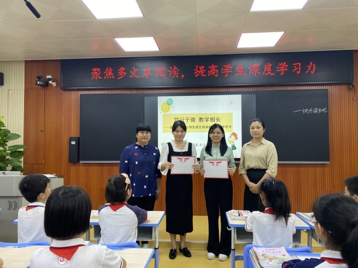 為了引領(lǐng)全鎮(zhèn)五年級語文教師,全面了解統(tǒng)編版五年級語文上冊教材的結(jié)構(gòu)特點(diǎn),聚焦多文本閱讀,提高多文本閱讀教學(xué)效率,提高學(xué)生深度學(xué)習(xí)力,2021年10月14日下午,小欖鎮(zhèn)東升片小學(xué)語文中心教研組在小欖鎮(zhèn)同樂小學(xué)舉行了統(tǒng)編版五年級語文上冊“聚焦多文本閱讀教學(xué),提高學(xué)生深度學(xué)習(xí)力”的教訓(xùn)一體化活動(dòng)。小欖鎮(zhèn)小語中心教研組副組長劉獨(dú)艷老師、東方小學(xué)劉霞老師和小欖鎮(zhèn)東升片區(qū)學(xué)校五六年級的語文老師們出席了本次活動(dòng)。