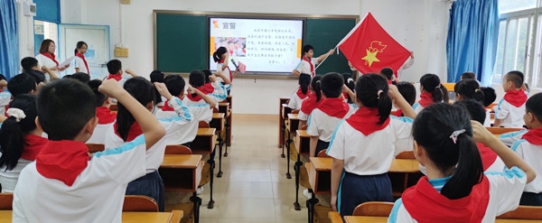 儀式前,學(xué)校通過對第二批入隊(duì)學(xué)生德智體美勞等方面的考察,經(jīng)由班主任與各任課老師評選,最終確定新隊(duì)員58名。同時,還組織同學(xué)們進(jìn)行了隊(duì)前學(xué)習(xí)和入隊(duì)考核,讓他們對中國共產(chǎn)黨、少先隊(duì)組織有了更深入的了解。