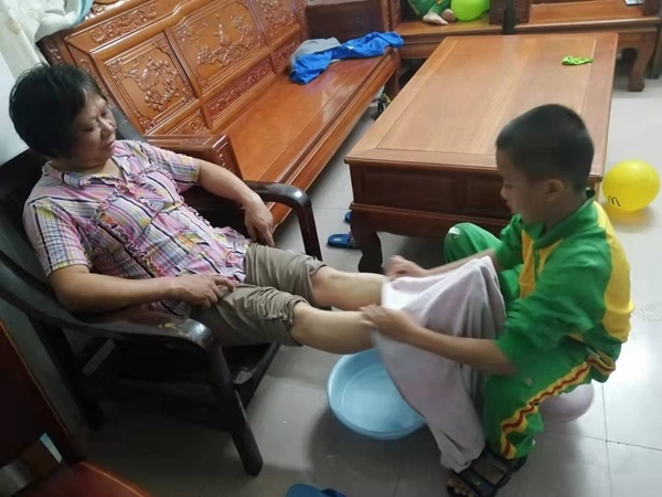 一到三年級的學(xué)生在家中對父母長輩說說藏在心中的溫暖話語,為長輩做一些力所能及的家務(wù)。四到六年級的學(xué)生了解家中長輩的興趣愛好與心愿期望,并且親手為父母長輩做一道他們喜歡的菜。一道道精致的菜肴,一片片感恩敬老之意。雖然有的同學(xué)廚藝略顯稚拙,但是其中包含著對家人濃濃的親情愛意。