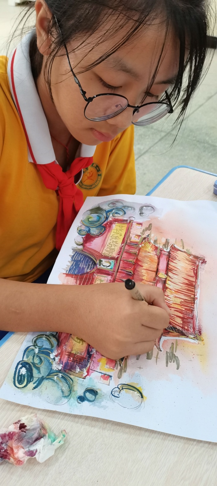 本次以“喜迎國(guó)慶,祝福祖國(guó)”為主題的愛國(guó)主義繪畫活動(dòng)在南朗小學(xué)大禮堂進(jìn)行現(xiàn)場(chǎng)書畫創(chuàng)作。比賽現(xiàn)場(chǎng),同學(xué)們作畫方式多樣:有的同學(xué)先用鉛筆構(gòu)圖;有的同學(xué)直接用勾線筆造型;還有的同學(xué)用的是水彩的表現(xiàn)手法。同學(xué)們通過各種線條、色彩,仔細(xì)地描繪和表達(dá)他們看到的、感受到的、想到的心中最美的祖國(guó),畫中充滿對(duì)祖國(guó)的大好河山的喜愛之情,流露出對(duì)祖國(guó)母親深深的熱愛。而在書法比賽現(xiàn)場(chǎng)中,同學(xué)們書寫的是習(xí)近平總書記的重要講話內(nèi)容,字字都表達(dá)了同學(xué)們對(duì)中華人民共和國(guó)深深的愛意。