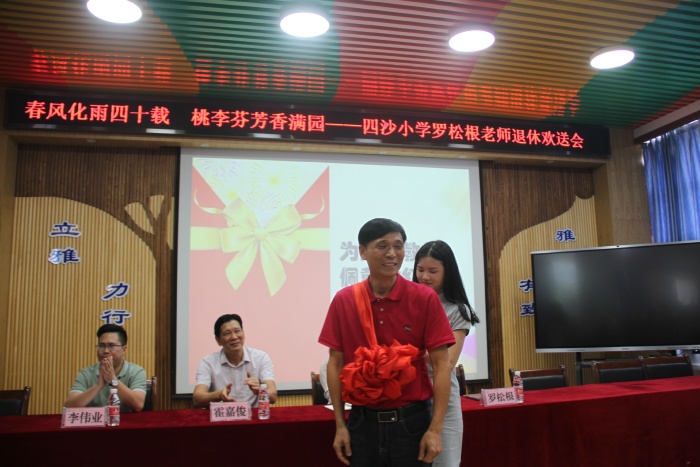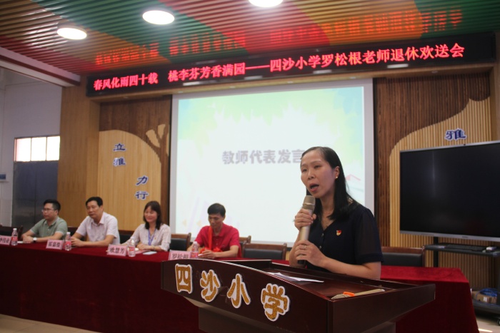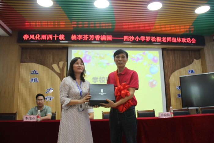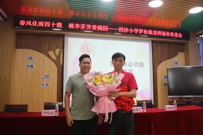 為弘揚人民教師教書育人的高尚品格,進一步提升教師的幸福感,增強教師的使命感和責(zé)任感,2021年10月11日中午,四沙小學(xué)工會委員會舉行了“春風(fēng)化雨四十載 桃李芬芳香滿園”為主題的羅松根老師光榮退休歡送會。橫欄鎮(zhèn)教育和體育事務(wù)中心主任霍嘉俊、教研專干李偉業(yè)蒞臨祝賀。