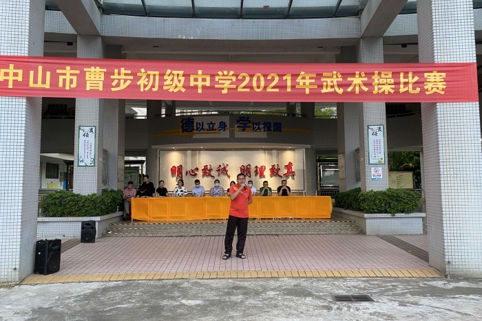 為了更好地促進曹步初級中學學生身體素質的提高,全面推行學校特色項目的發(fā)展,促進體藝2+2項目的建設,檢測初一、初二學生課間操的學習成果,以“習慣養(yǎng)成”為原則,規(guī)范學校管理,加強班風班貌和精神文明建設,加強德育、智育、體育的發(fā)展和合作,全面增強班級凝聚力,促進學風、校風建設,使課間達到規(guī)范化、熟練化、美觀化,2021年10月20日下午,曹步初級中學在中大堂前舉行了初一、初二級課間操行為規(guī)范比賽暨武術操比賽,本次活動由體育老師賀坤主持,初一初二全體同學和部分家長參加了本次活動,學校領導和部分家委擔任本次活動的評委。