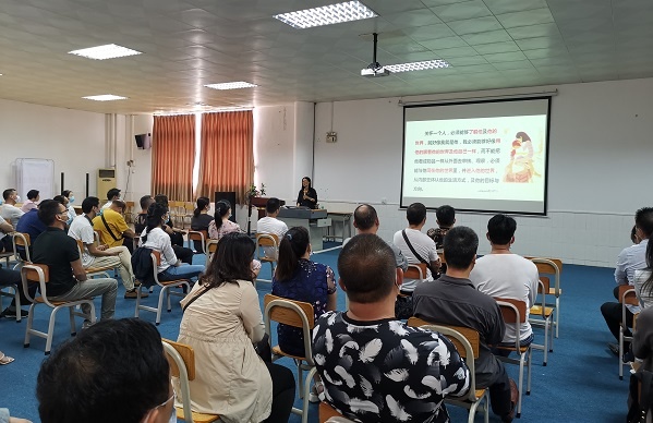 梁劍玲老師主要從心理健康的定義、青少年的心理問題現(xiàn)狀、家長如何幫助心理障礙的青少年這三個方面給現(xiàn)場的教師和家長講解了心理健康知識。