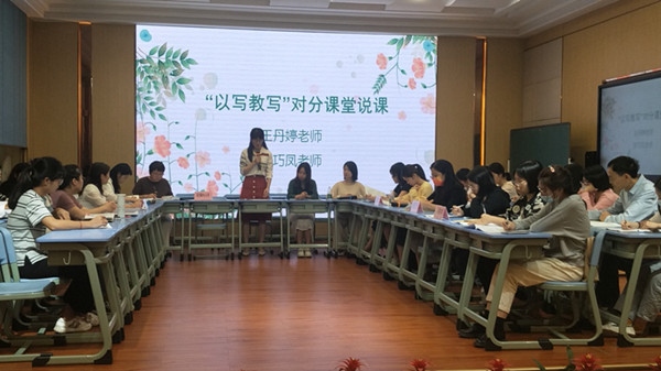 接著,參會老師共聚一堂,對小學(xué)習(xí)作教學(xué)進(jìn)行互動(dòng)交流?;?dòng)交流從上課老師進(jìn)行說課開始,兩位老師結(jié)合對分課堂教學(xué)的特點(diǎn),闡述了她們兩節(jié)課的教學(xué)思路,目標(biāo)達(dá)成。接著,各學(xué)校代表以及與會老師分別就這兩節(jié)課紛紛發(fā)表了自己的看法,大家暢所欲言,點(diǎn)亮著一個(gè)個(gè)耀眼的知識火花。