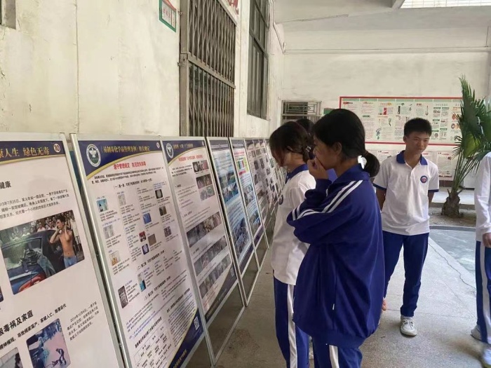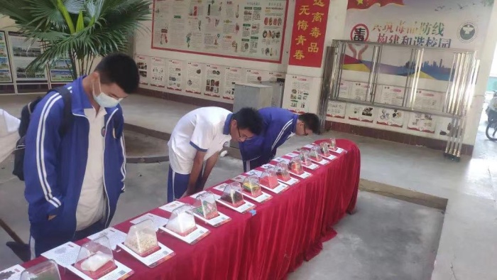 為深入開展毒品預防教育活動,中山市古鎮(zhèn)高級中學于10月24-26日聯(lián)合中山市強制戒毒所舉辦了禁毒圖片展覽和仿真毒品展覽。10月27日下午,中山市司法行政禁毒宣講團的林苑警官為高一學生開展了以“健康人生,綠色無毒”為主題的禁毒教育講座,學校德育處主任王學智、副主任楊寶輝、高一年級主任張電坤、副主任劉雄萬、相關工作人員及高一學生參與了本次講座。