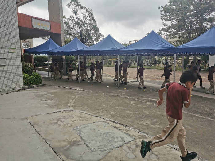 警報聲一響,模擬有易燃物著火發(fā)出濃煙,學生馬上雙手捂住口鼻,逃避開校園建筑物,在教師的引導下迅速按指定路線有序疏散,班主任自始至終跟隊,密切關(guān)注演練現(xiàn)場,維持活動紀律,防止意外發(fā)生。學生疏散到指定的安全區(qū)域后,各班班長迅速集合,清點人數(shù)并向總指揮匯報情況。雖然天公不作美,剛疏散到一半,馬上就下起了大雨,但是老師們和同學們都能沉著冷靜、互相合作,一切行動聽從指揮,有序到達能避雨的地方排好隊,不慌亂,以較快的速度,圓滿地完成了此次緊急疏散的演練任務。
