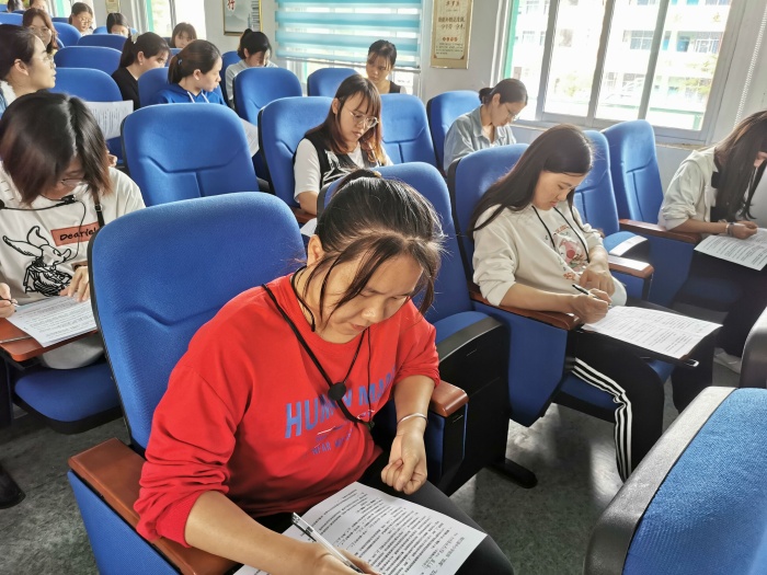 接著,汪芳組織了教師“五項(xiàng)管理”閉卷答題活動。老師們經(jīng)過30分鐘的答題時(shí)間,交上了滿意的答卷。
