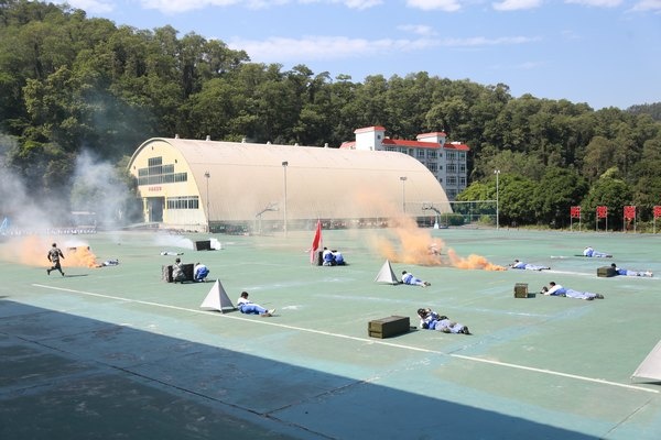 最后國防教育基地張培棟主任作了總結(jié)性發(fā)言。他指出,五天的軍訓(xùn)時(shí)間,教官們的嚴(yán)格訓(xùn)練和老師們的關(guān)心關(guān)愛,使得同學(xué)們的身體素質(zhì)和精神面貌得到改變,軍訓(xùn)匯演成果喜人。他希望同學(xué)們要發(fā)揚(yáng)軍隊(duì)優(yōu)良傳統(tǒng),保持軍訓(xùn)優(yōu)良作風(fēng);嚴(yán)于律己,養(yǎng)成良好的習(xí)慣,遵守規(guī)章制度;增強(qiáng)團(tuán)隊(duì)意識(shí)和集體榮譽(yù)感。