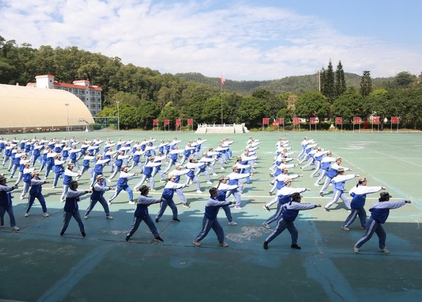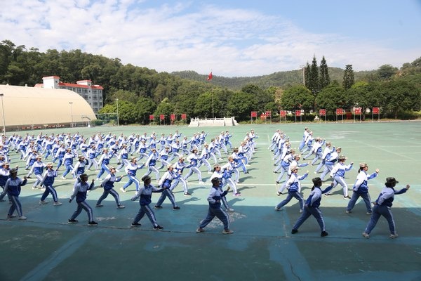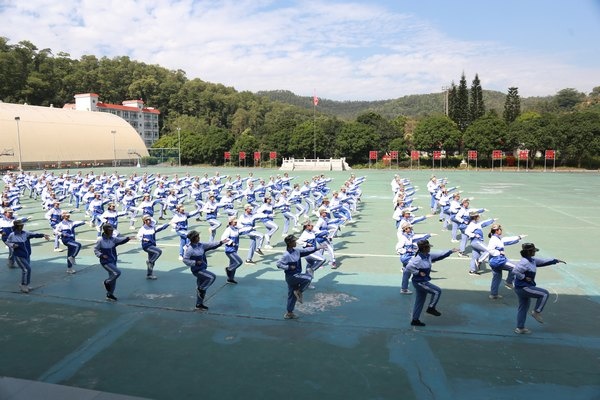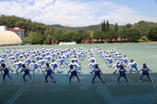 嘹亮有力的口號作驪歌,難忘的軍訓(xùn)將至尾聲,藍(lán)天白云之下,在結(jié)營儀式中,經(jīng)歷煥新蛻變的龍山人正展示著一份完美的軍訓(xùn)答卷。只見分列式行如風(fēng),立如松,不動(dòng)安如鐘;匕首操方隊(duì)英姿颯爽,氣壯山河;軍體拳方隊(duì)慷慨激昂,意氣風(fēng)發(fā);戰(zhàn)術(shù)方隊(duì)行云流水,整齊劃一。匯報(bào)過程連貫有序,現(xiàn)場氣氛莊嚴(yán)肅穆,動(dòng)作鏗鏘有力,充分展示展現(xiàn)出了龍山學(xué)子朝氣蓬勃的精神面貌,也體現(xiàn)了他們熱烈昂揚(yáng)的愛國情懷。