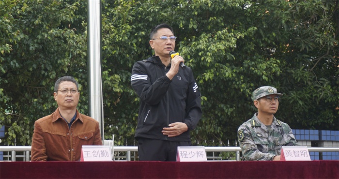 緊接著,開(kāi)發(fā)區(qū)人民武裝部辦公室主任黃智明同志在儀式上向新生提出了軍訓(xùn)具體要求:要嚴(yán)格要求自己,做到思想上重視、行動(dòng)上跟緊;同時(shí),要遵守各項(xiàng)規(guī)章制度和生活秩序,遵守紀(jì)律,服從指揮;最后,要發(fā)揚(yáng)吃苦精神,鍛造頑強(qiáng)的意志和堅(jiān)韌不拔的品格。他希望新生們通過(guò)軍訓(xùn)能塑造艱苦奮斗、迎難而上的堅(jiān)強(qiáng)品格,遵守軍事紀(jì)律,充分展現(xiàn)團(tuán)隊(duì)意識(shí),增強(qiáng)集體榮譽(yù)感。