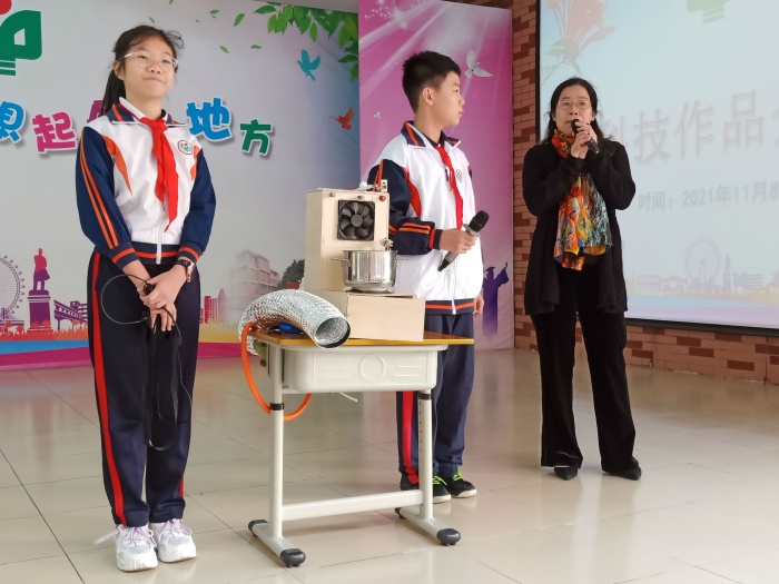 升旗儀式后,校會拉開序幕。品學(xué)兼優(yōu)的“小發(fā)明家”六2班趙梓濤同學(xué)展示了他的科技創(chuàng)新作品,臺上的他,熟練地演示并分享了作品——“抽煙機(jī)”的工作原理。隨后,韓主任采訪了他的創(chuàng)新作品的創(chuàng)作來源以及創(chuàng)新之處。臺下的同學(xué)們聽得津津有味,若有所思。趙子濤同學(xué)那精益求精、鍥而不舍的探索精神在同學(xué)們的心中扎根,學(xué)校鼓勵大家學(xué)習(xí)他善于觀察生活中的各類現(xiàn)象,勤于思考,遇到問題努力想出各種點子去實踐、去解決的能力。