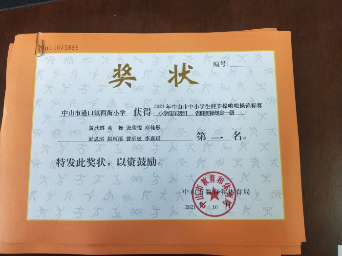 賽場上,西街小學(xué)的運動員們訓(xùn)練有序,精神飽滿,舞姿颯爽,精彩的表現(xiàn)和超常的發(fā)揮為自己贏得了掌聲,也為學(xué)校贏得了可喜的佳績!本次賽程共斬獲了四個獎項:小學(xué)低年級組省健美操啦啦操規(guī)定一級第一名、小學(xué)高年級組省健美操啦啦操規(guī)定一級第一名、小學(xué)高年級組省啦啦操爵士規(guī)定一級第二名、小學(xué)高年級組輕器械健身操自選動作第六名。