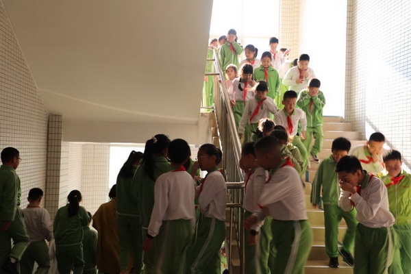 演練前,班主任向同學(xué)們講解消防安全知識(shí),告知每一位同學(xué)安全疏散路線及逃生方法。下午15:25分,突然響起的警報(bào)聲劃破了學(xué)校的寧靜,停車場附近濃煙滾滾。正副班主任引導(dǎo)同學(xué)們從指定路線有序地疏散到安全地帶。在老師的帶領(lǐng)下,同學(xué)們分小組迅速跑出教室,一隊(duì)接著一隊(duì),緊張有序地從安全疏散通道撤離至指定的安全地點(diǎn)。通過演練,同學(xué)們熟悉了逃生路線,做到能在危急信號(hào)響起時(shí),有序并快速地逃離現(xiàn)場。到達(dá)“安全集結(jié)點(diǎn)”,各班學(xué)生快速清點(diǎn)人數(shù),并向演習(xí)指揮老師報(bào)告班級情況。