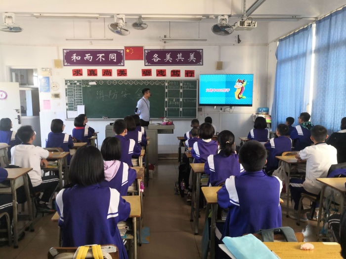班會課上,班主任先講解了“消防安全日”來源。11月9日的月日數(shù)恰好與火警電話號碼119相同,而且這一天前后,正值風(fēng)干物燥、火災(zāi)多發(fā)之際,全國各地都在緊鑼密鼓地開展冬季防火工作。為增加全民的消防安全意識,使“119”更加深入人心,公安部將每年的11月9日定為全國的“消防宣傳日”。然后,從“火災(zāi)的危險性、燃燒必須具備的條件、火場上如何逃生、如何報警”四個方面介紹在家里和學(xué)校如何預(yù)防火災(zāi)。各班還通過播放視頻講解了在發(fā)生火災(zāi)時要立即離開危險區(qū)、選擇簡便安全的通道和疏散設(shè)施、使用簡便防護(hù)器材、自制簡易救生器材、尋求暫時避難區(qū)域。