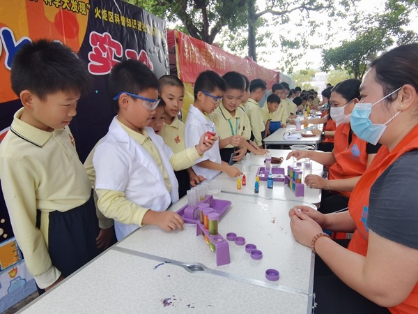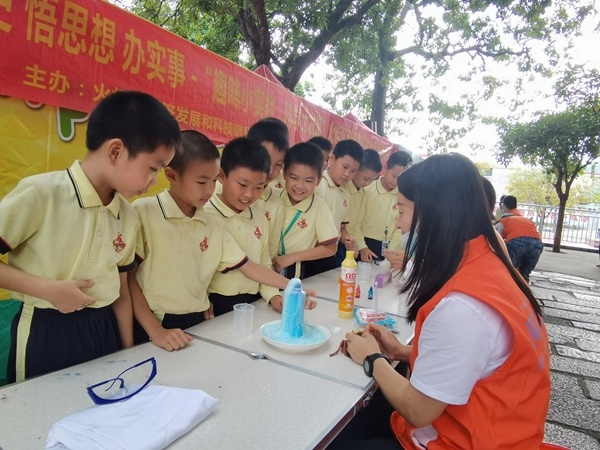 當(dāng)日下午,開發(fā)區(qū)第三小學(xué)的“鳳凰臺”熱鬧非凡,工作人員為學(xué)生設(shè)置了6個不同的小實驗體驗區(qū)讓學(xué)生通過實踐更清晰地了解實驗原理的同時了解科學(xué)的魅力。在工作人員的引導(dǎo)下,學(xué)生們樂于動手實驗,儼然是一個個小科學(xué)家,讓學(xué)生近距離地感受了科學(xué)的神奇魅力。