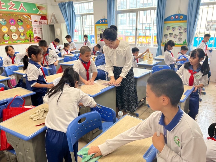 為搞好本次大掃除,各班老師對各責任區(qū)衛(wèi)生清潔工作進行了具體部署。同學們在班主任的親自帶領下,全體總動員,先整理了書包,然后對班里的門窗、地面、桌椅、圖書角等衛(wèi)生區(qū),尤其是衛(wèi)生死角進行了認真打掃清理。